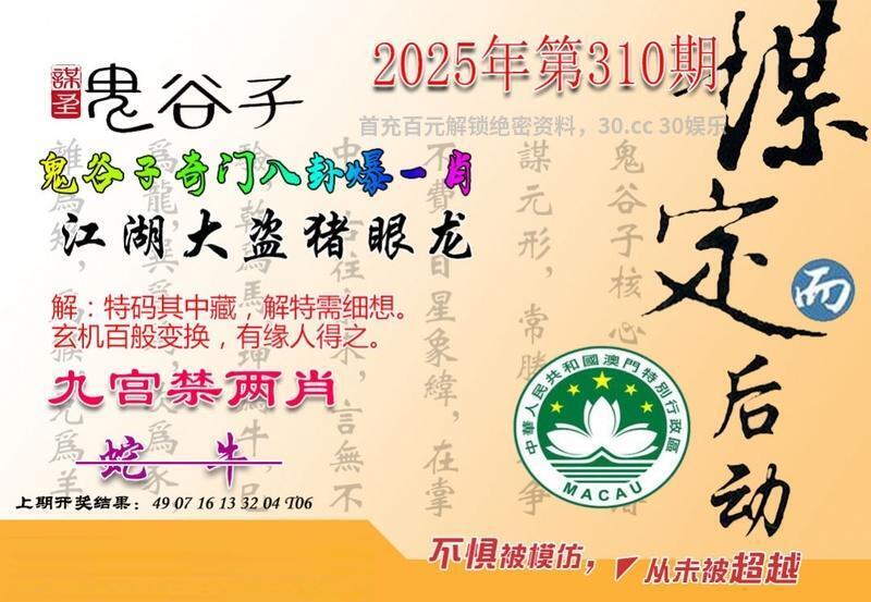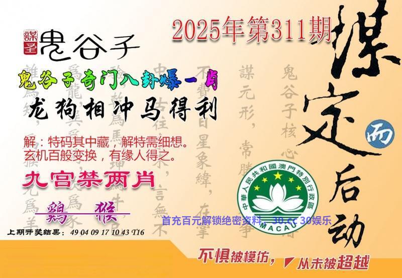 311期澳彩鬼谷子【龙狗相冲马得利开蛇37中